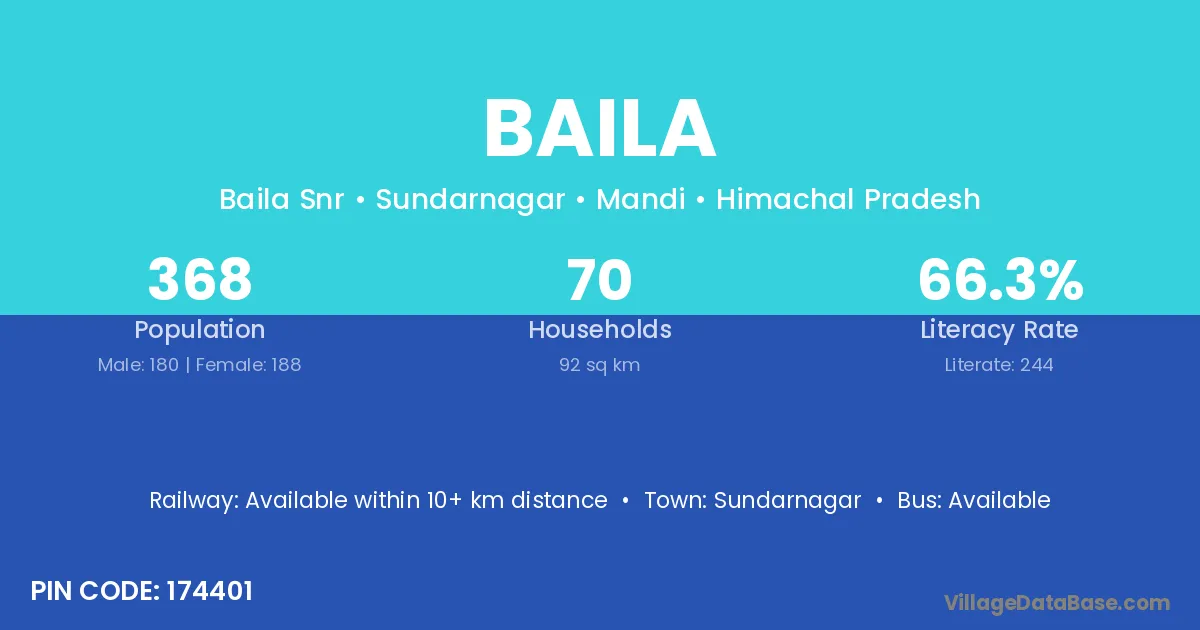 Sundarnagar is the nearest town to Baila village for major economic activities