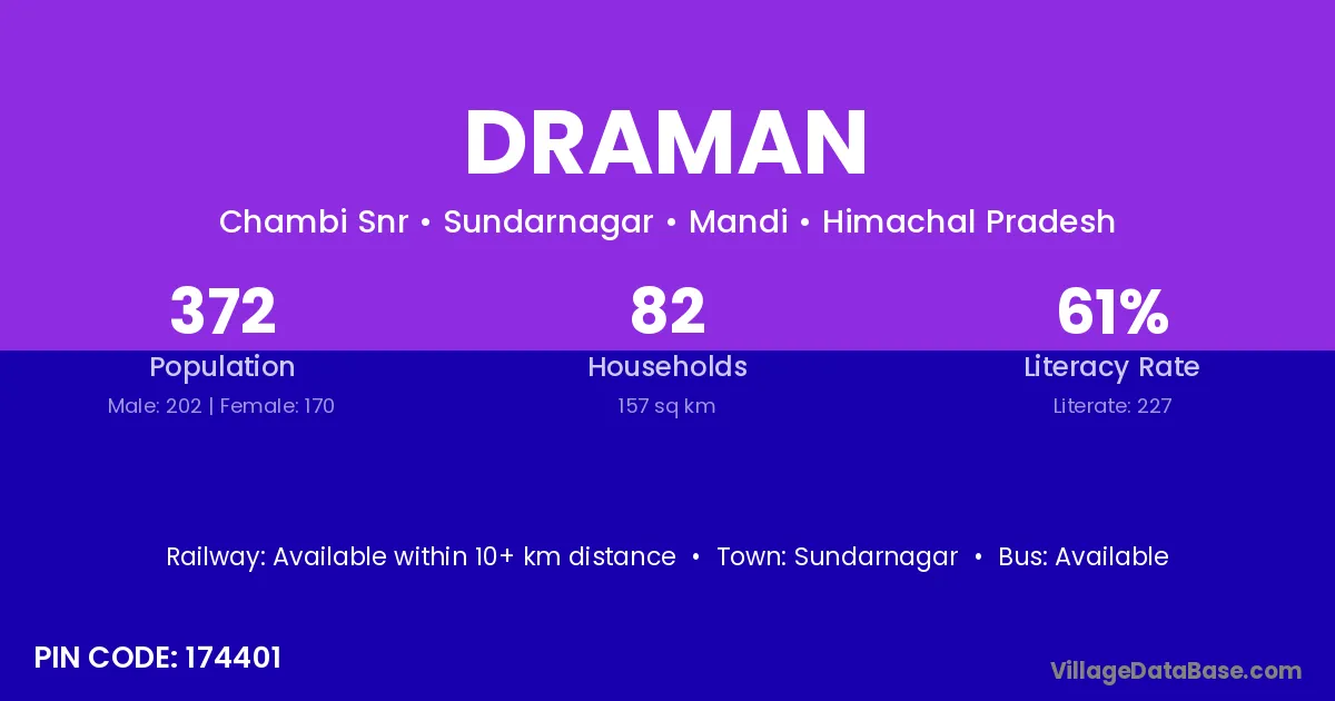 Sundarnagar is the nearest town to Draman village for major economic activities