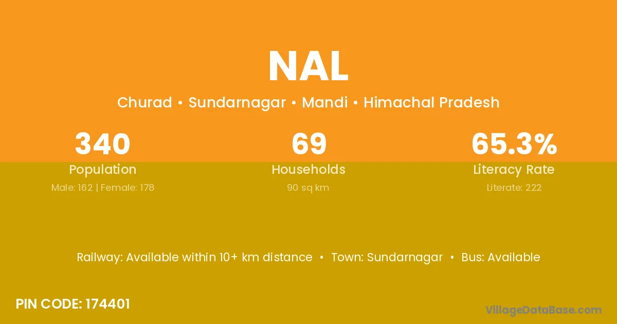 Nal village has a total population of 340 people, of which 162 are males and 178 are females.