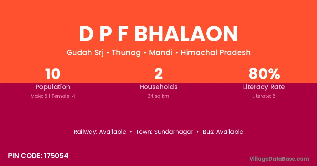 D P F Bhalaon village has a total population of 10 people, of which 6 are males and 4 are females.