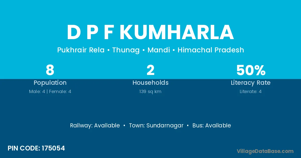 Sundarnagar is the nearest town to D P F Kumharla village for major economic activities
