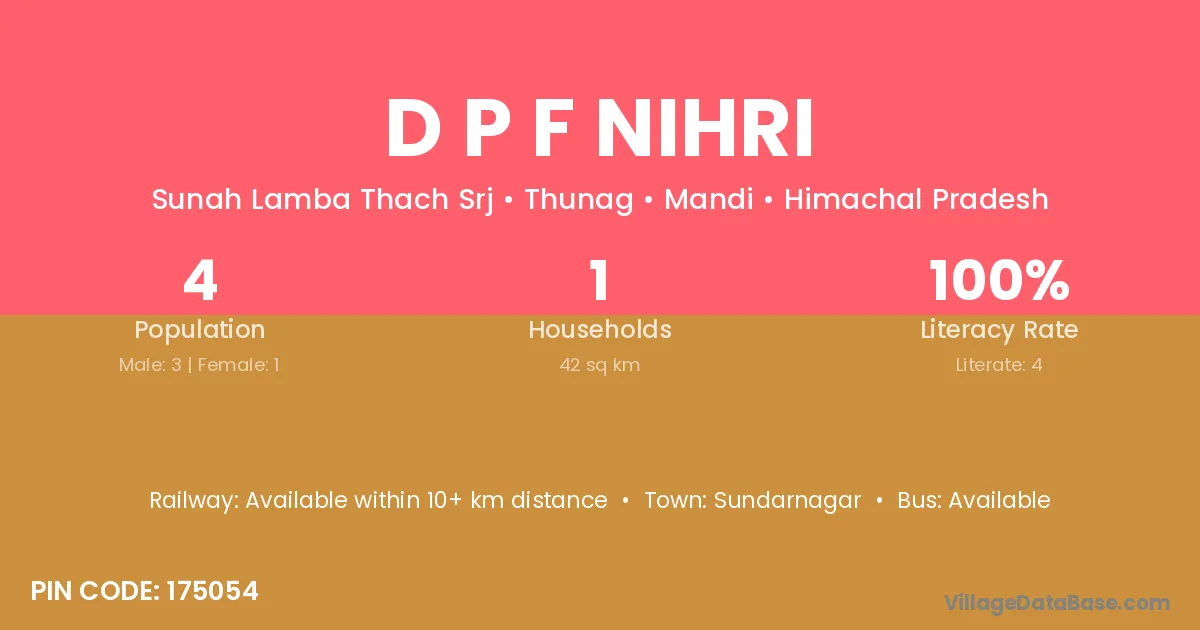 D P F Nihri village has a total population of 4 people, of which 3 are males and 1 are females.