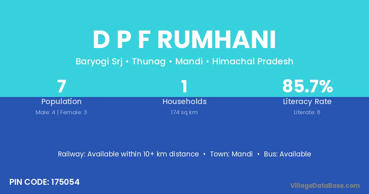 D P F Rumhani village has a total population of 7 people, of which 4 are males and 3 are females.