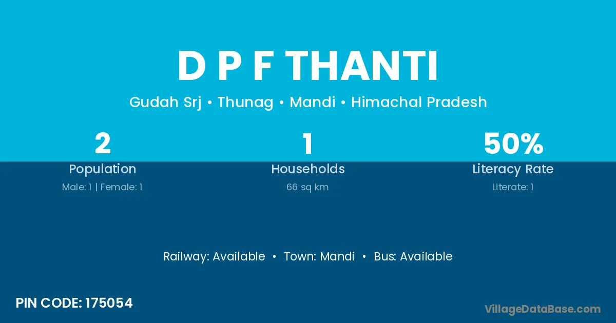 D P F Thanti village has a total population of 2 people, of which 1 are males and 1 are females.