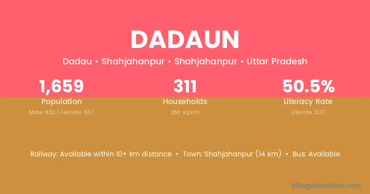 Dadaun village has a total population of 338 people, of which 165 are males and 173 are females.