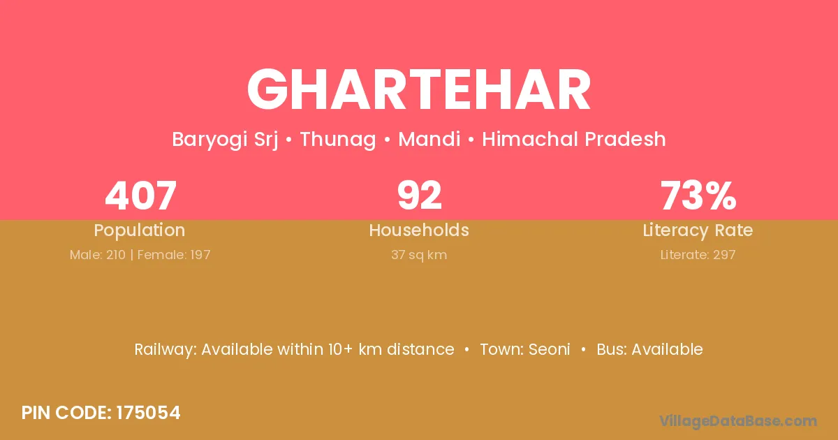 Ghartehar village has a total population of 407 people, of which 210 are males and 197 are females.