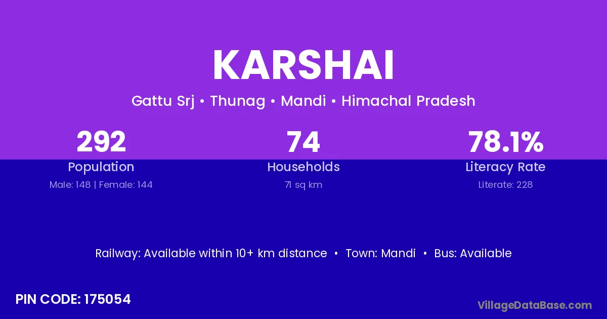 Karshai village has a total population of 292 people, of which 148 are males and 144 are females.