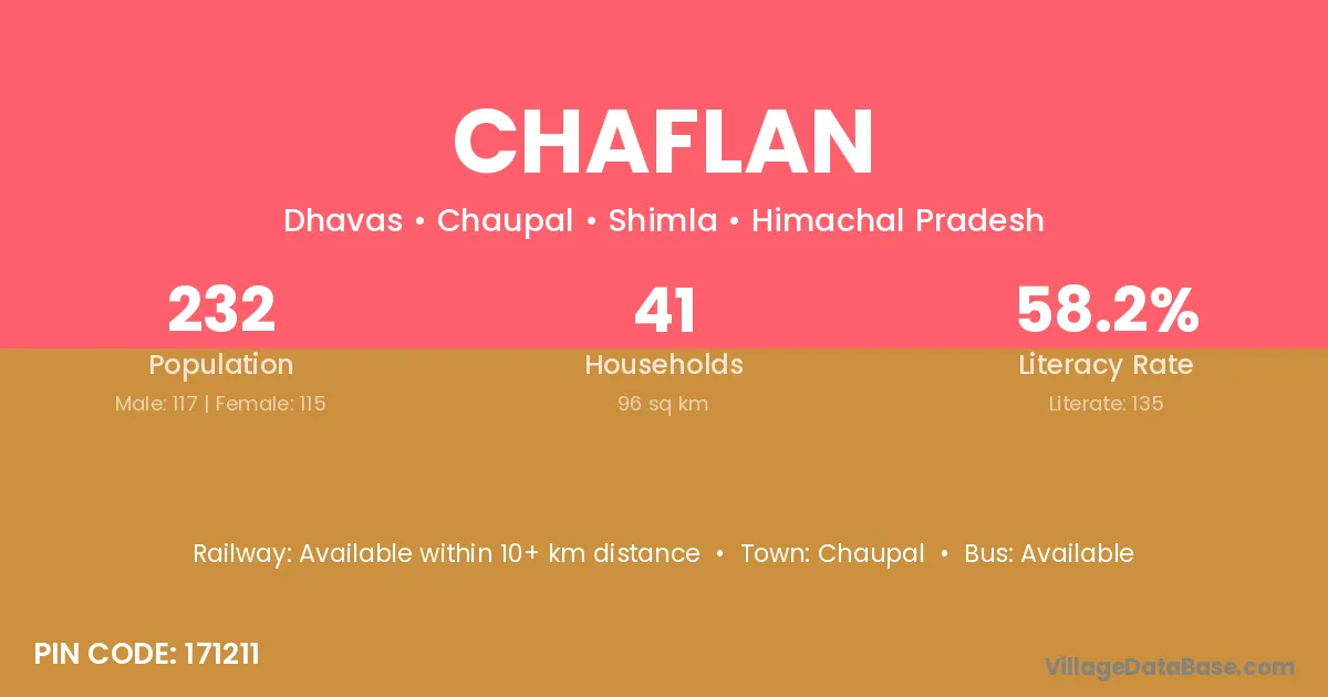 Chaflan village has a total population of 232 people, of which 117 are males and 115 are females.