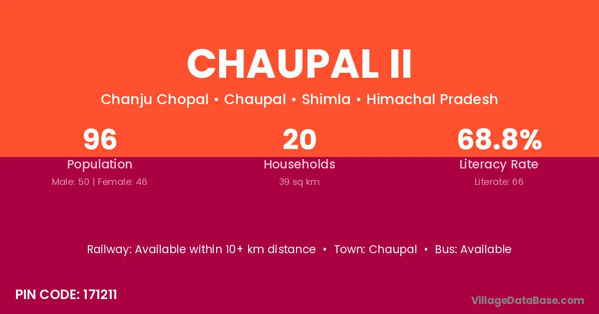 Chaupal Ii village has a total population of 96 people, of which 50 are males and 46 are females.