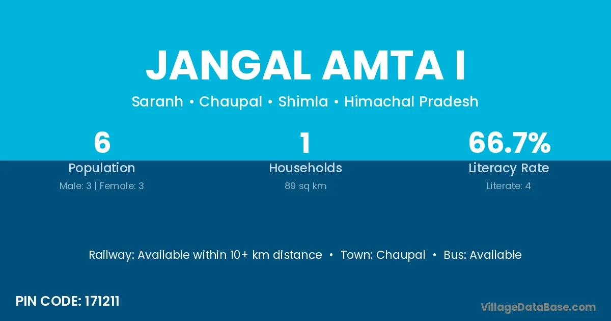Jangal Amta I village has a total population of 6 people, of which 3 are males and 3 are females.