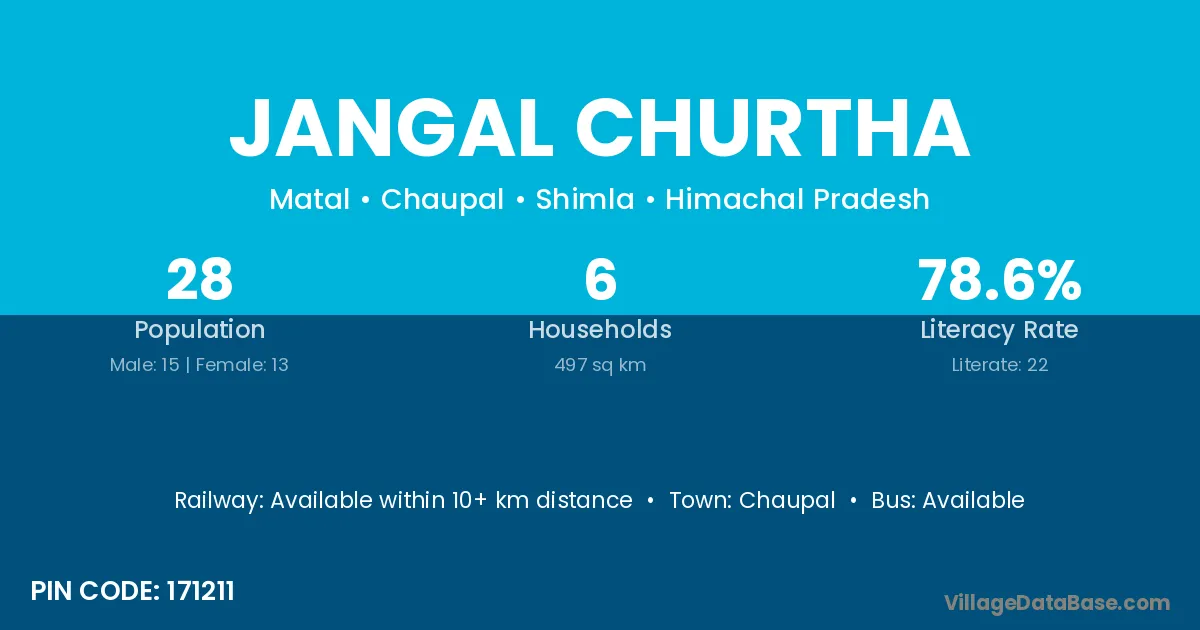 Jangal Churtha village has a total population of 28 people, of which 15 are males and 13 are females.