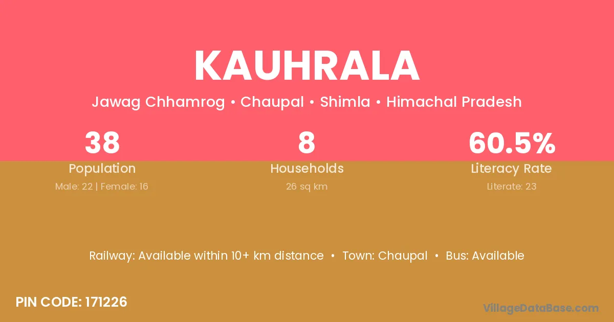 Kauhrala village has a total population of 38 people, of which 22 are males and 16 are females.