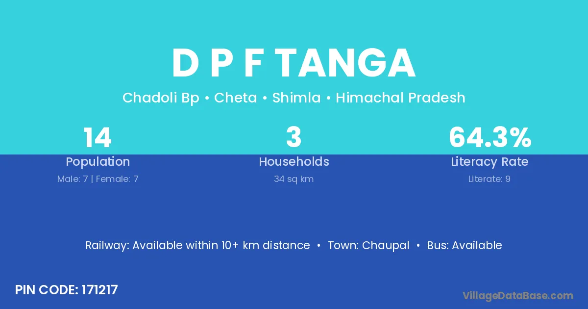 D P F Tanga village is located in the Cheta Tehsil of the Shimla district in Himachal Pradesh .