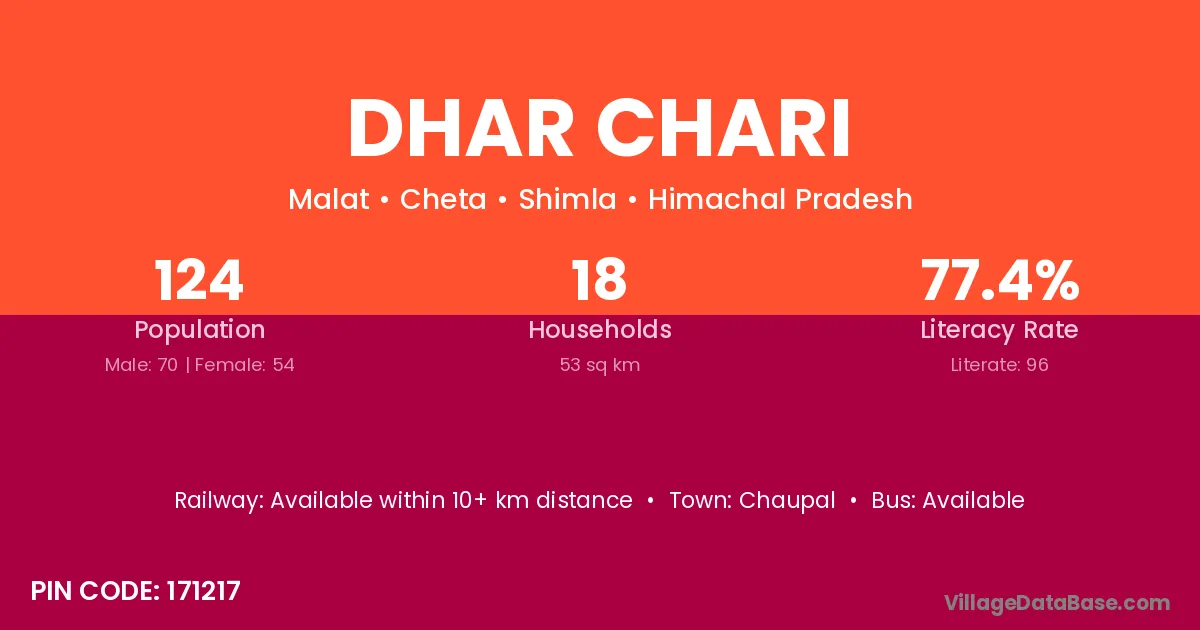 Dhar Chari village has a total population of 124 people, of which 70 are males and 54 are females.