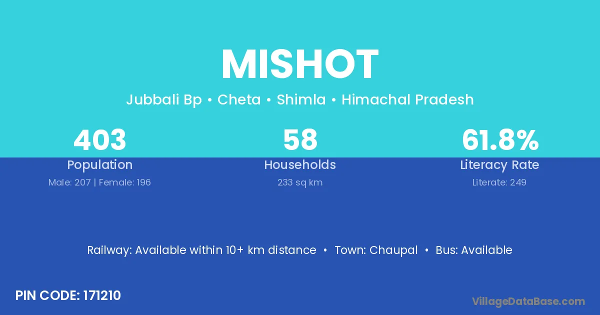 Mishot village is located in the Cheta Tehsil of the Shimla district in Himachal Pradesh .