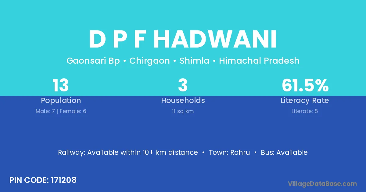 D P F Hadwani village has a total population of 13 people, of which 7 are males and 6 are females.