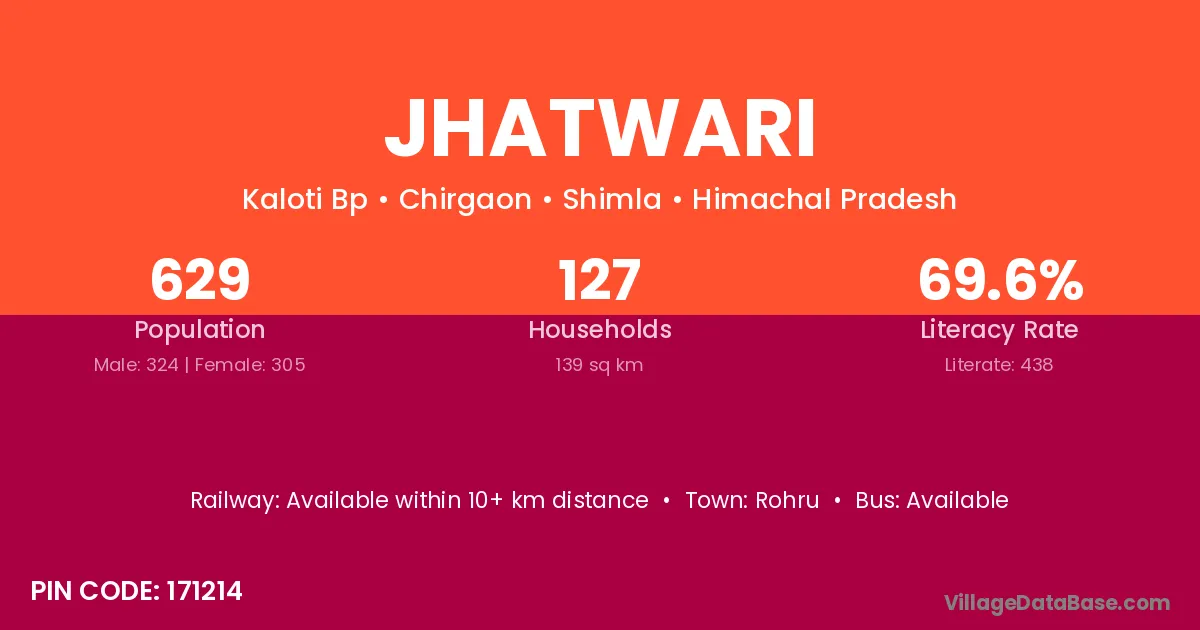 Jhatwari village has a total population of 629 people, of which 324 are males and 305 are females.