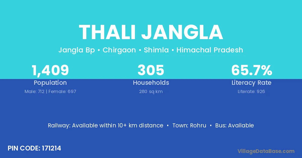 Thali Jangla village has a total population of 1,409 people, of which 712 are males and 697 are females.