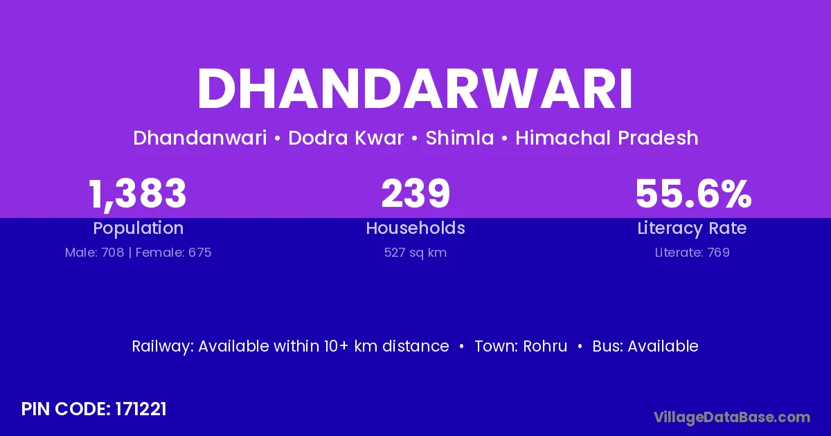 Rohru is the nearest town to Dhandarwari village for major economic activities