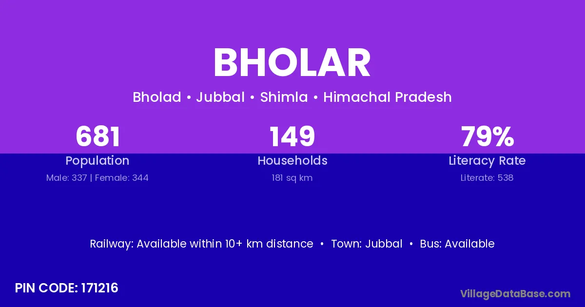 Jubbal is the nearest town to Bholar village for major economic activities