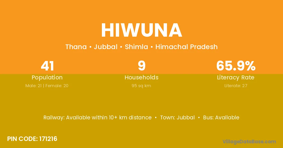 Jubbal is the nearest town to Hiwuna village for major economic activities