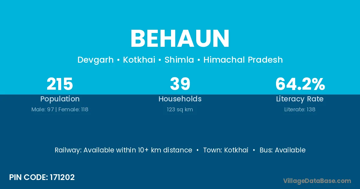 Behaun village has a total population of 215 people, of which 97 are males and 118 are females.