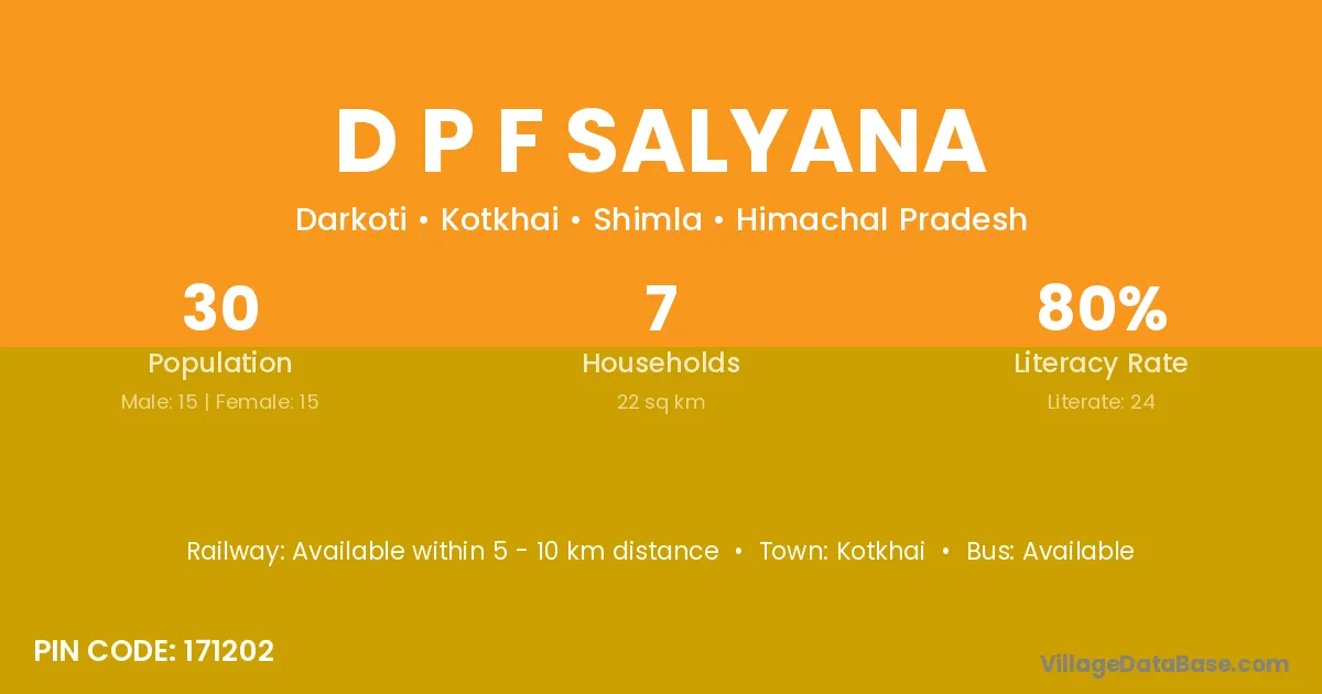 D P F Salyana village has a total population of 30 people, of which 15 are males and 15 are females.