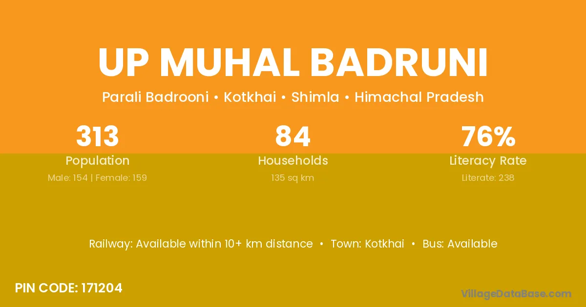 Up Muhal Badruni village has a total population of 313 people, of which 154 are males and 159 are females.