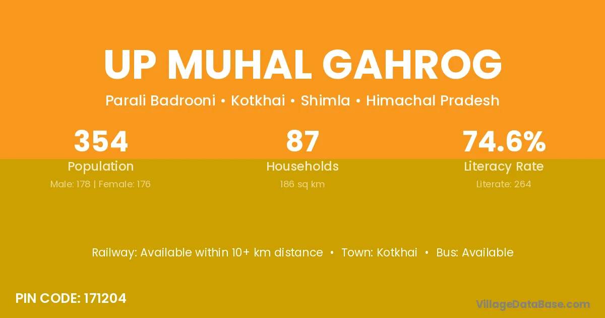 Up Muhal Gahrog village has a total population of 354 people, of which 178 are males and 176 are females.