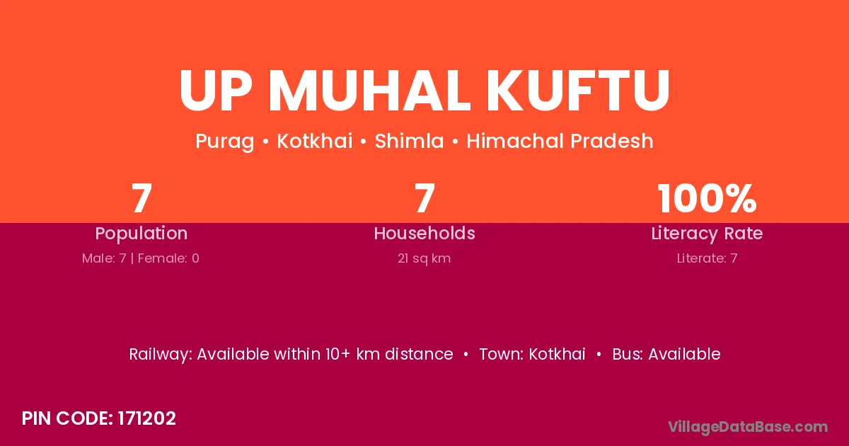 Up Muhal Kuftu village has a total population of 7 people, of which 7 are males and 0 are females.
