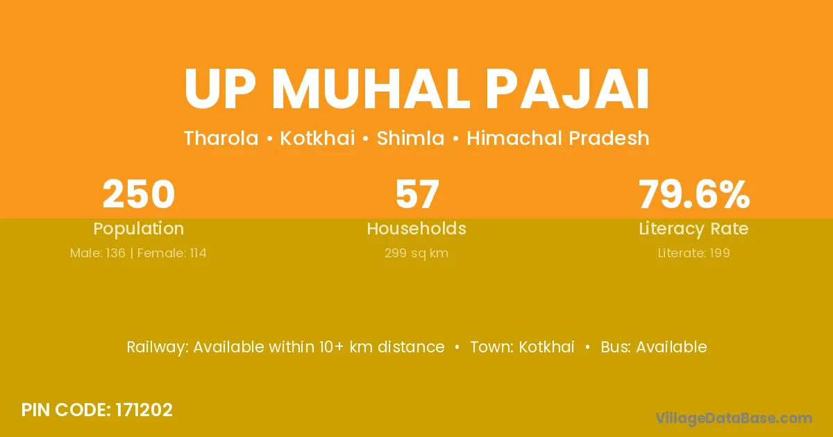 Up Muhal Pajai village is located in the Kotkhai Tehsil of the Shimla district in Himachal Pradesh .