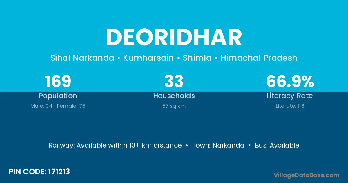 Narkanda is the nearest town to Deoridhar village for major economic activities
