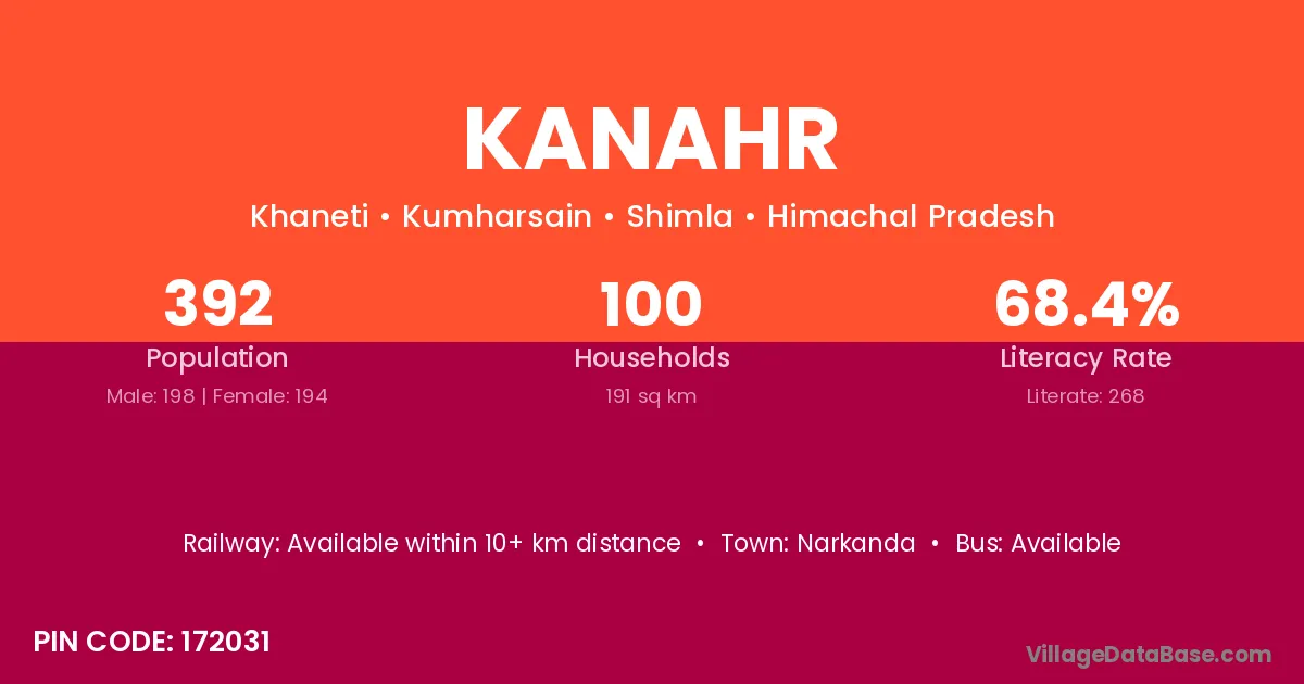 Narkanda is the nearest town to Kanahr village for major economic activities