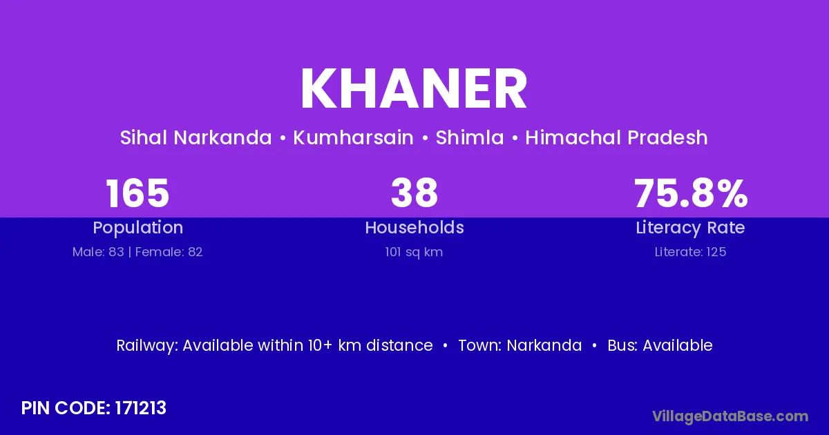 Khaner village has a total population of 165 people, of which 83 are males and 82 are females.