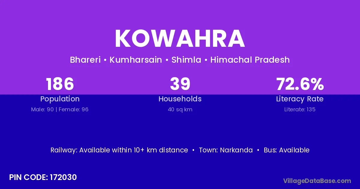 Narkanda is the nearest town to Kowahra village for major economic activities
