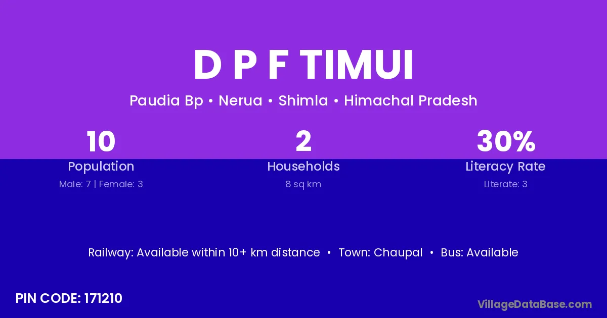 D P F Timui village is located in the Nerua Tehsil of the Shimla district in Himachal Pradesh .