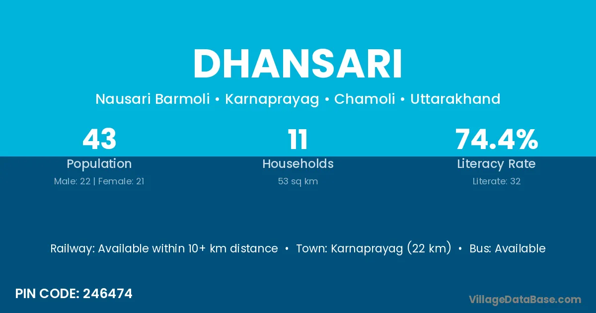 Dhansari village has a total population of 6 people, of which 3 are males and 3 are females.