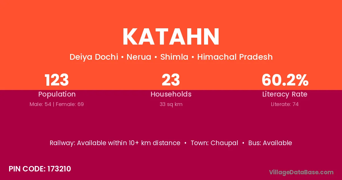 Katahn village has a total population of 123 people, of which 54 are males and 69 are females.