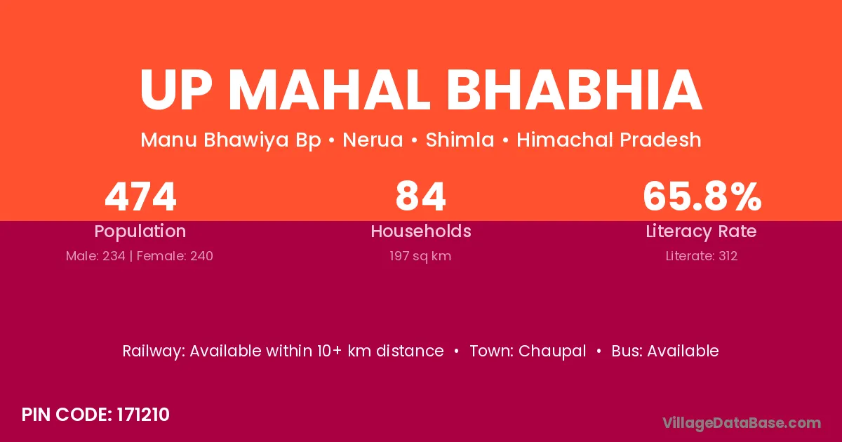 Up Mahal Bhabhia village is located in the Nerua Tehsil of the Shimla district in Himachal Pradesh .