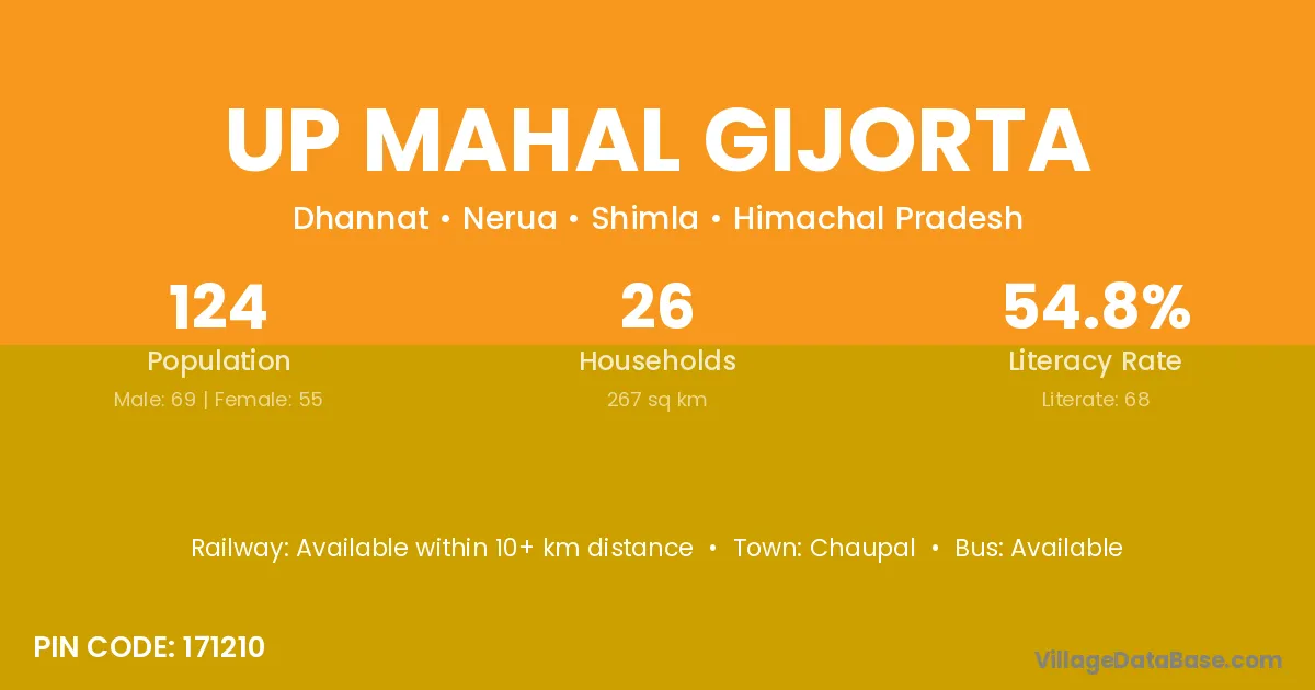 Up Mahal Gijorta village is located in the Nerua Tehsil of the Shimla district in Himachal Pradesh .