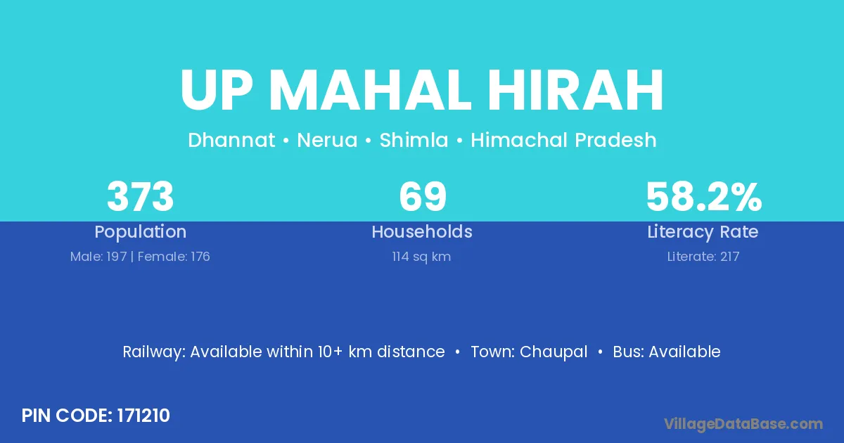 Up Mahal Hirah village has a total population of 373 people, of which 197 are males and 176 are females.