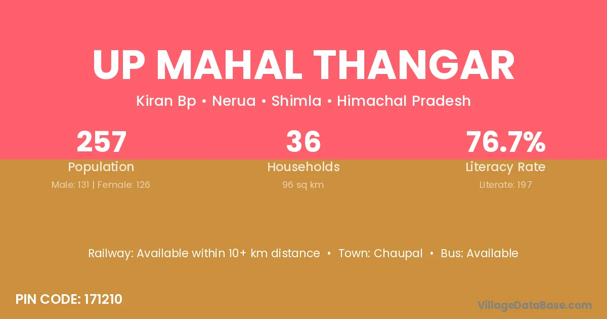 Up Mahal Thangar village is located in the Nerua Tehsil of the Shimla district in Himachal Pradesh .