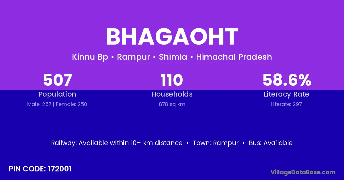 Bhagaoht village has a total population of 507 people, of which 257 are males and 250 are females.