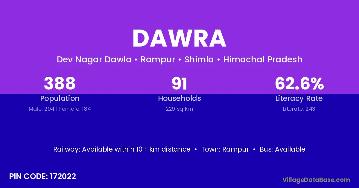 According to Census 2011 information, the village code of Dawra village is 172022.