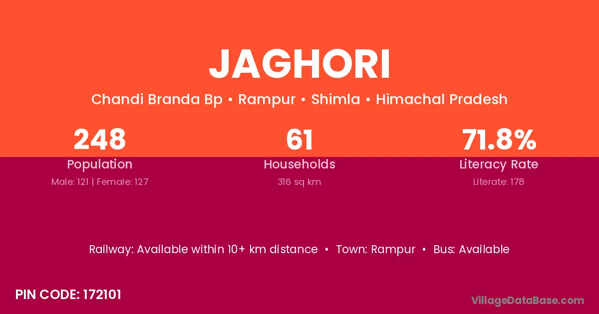 Jaghori village has a total population of 248 people, of which 121 are males and 127 are females.