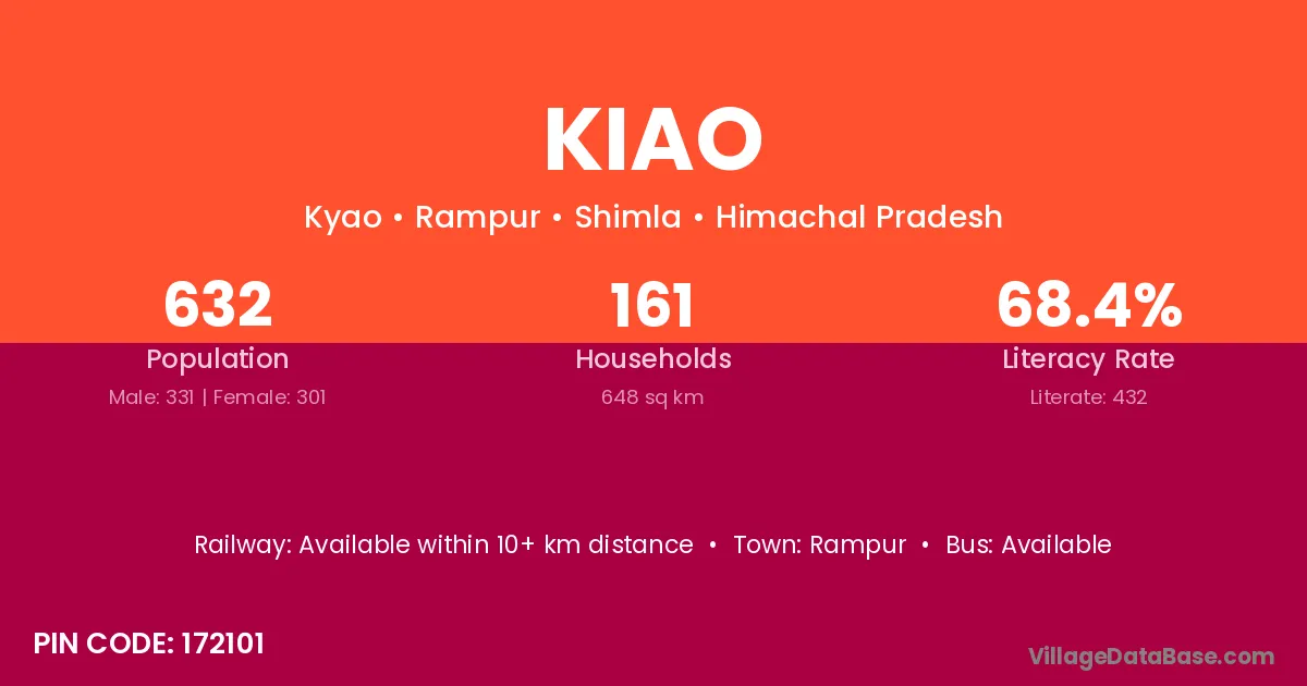 Kiao village has a total population of 632 people, of which 331 are males and 301 are females.