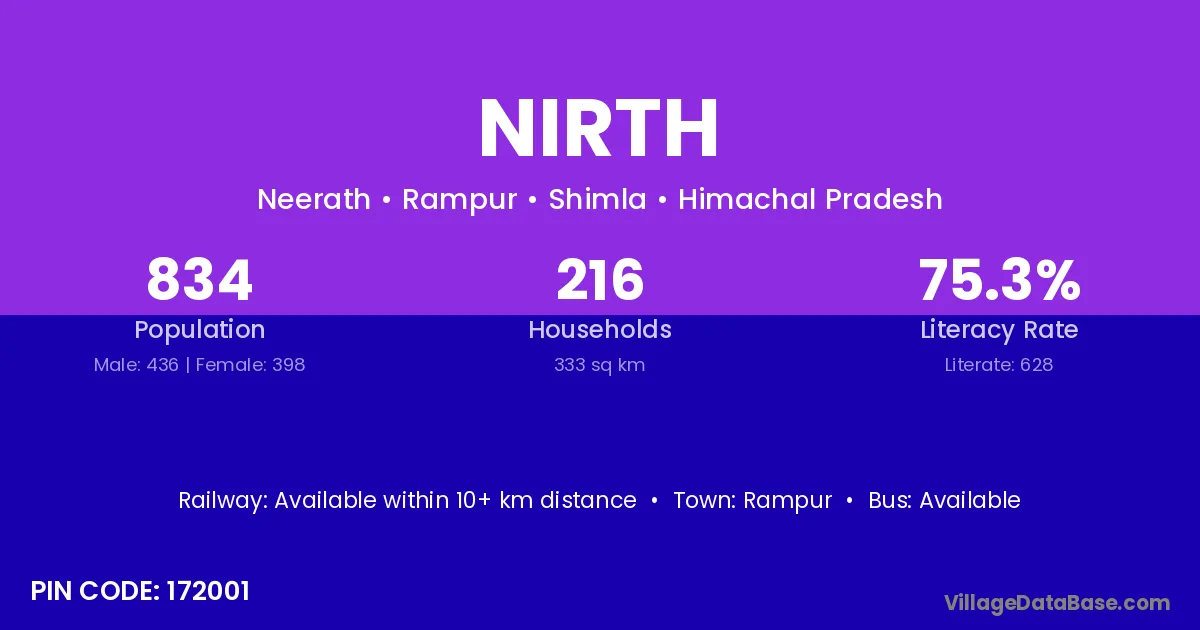 According to Census 2011 information, the village code of Nirth village is 172001.