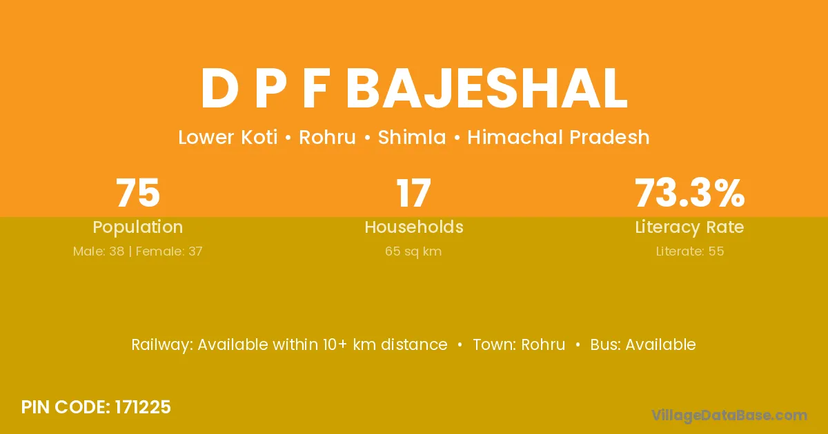 D P F Bajeshal village has a total population of 75 people, of which 38 are males and 37 are females.