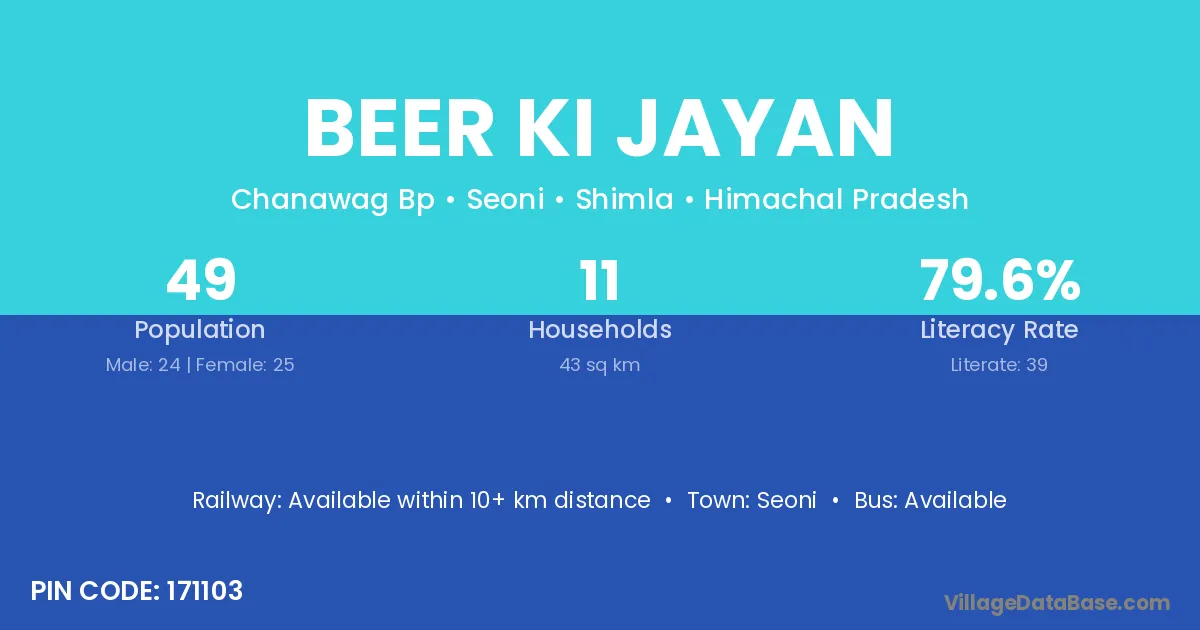 Beer Ki Jayan village has a total population of 49 people, of which 24 are males and 25 are females.