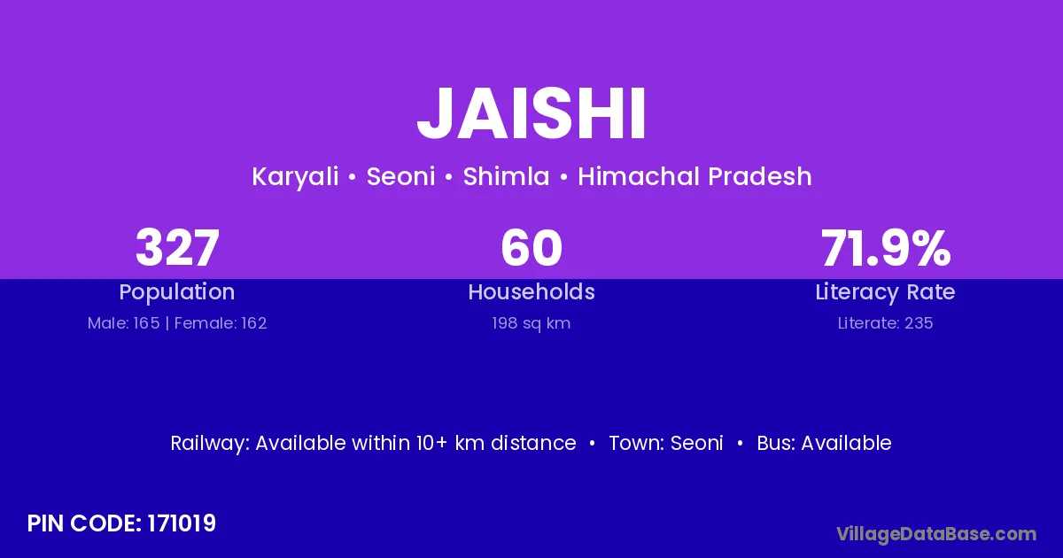 According to Census 2011 information, the village code of Jaishi village is 171019.